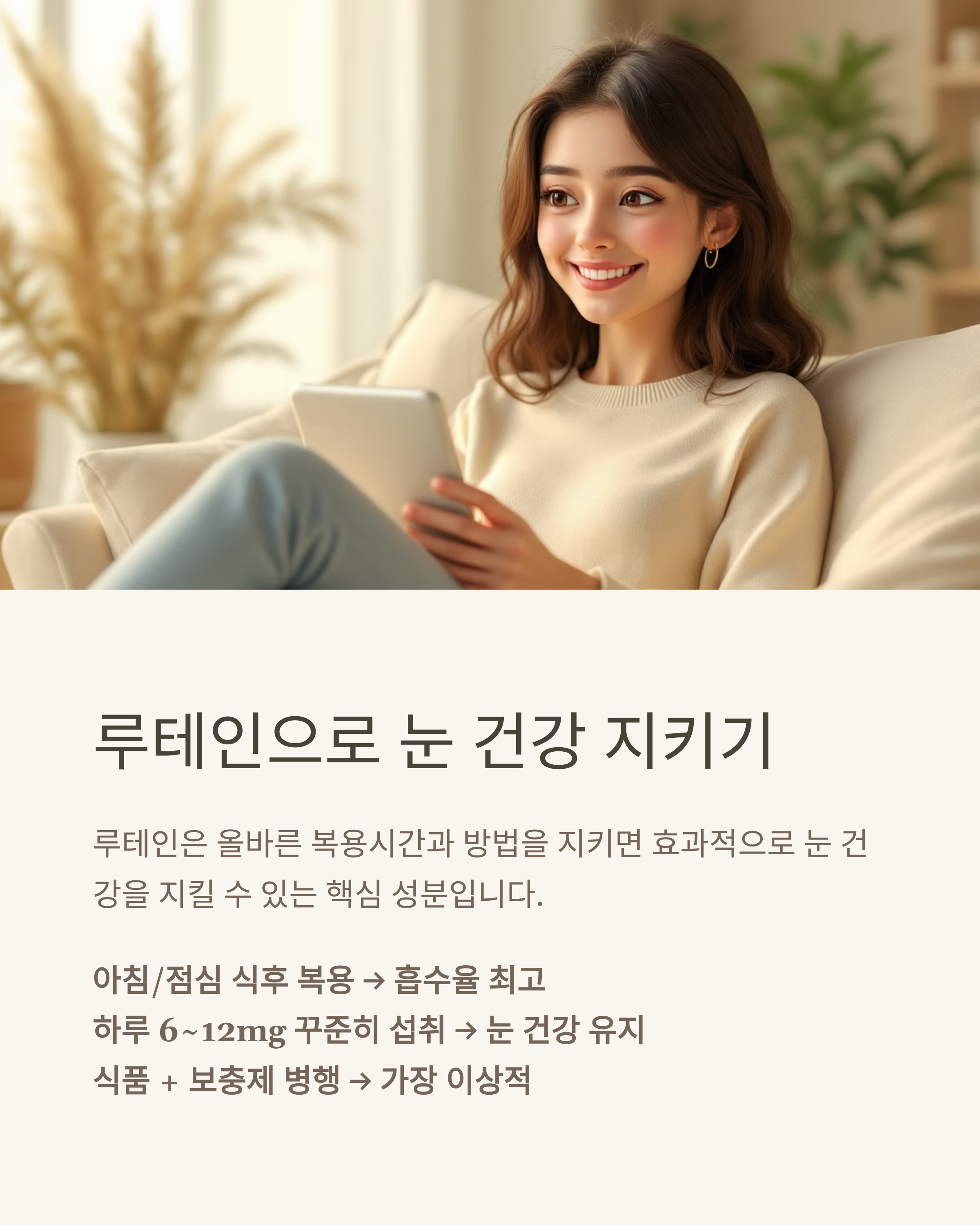 - 하루 6~12mg 꾸준히 섭취 → 눈 건강 유지