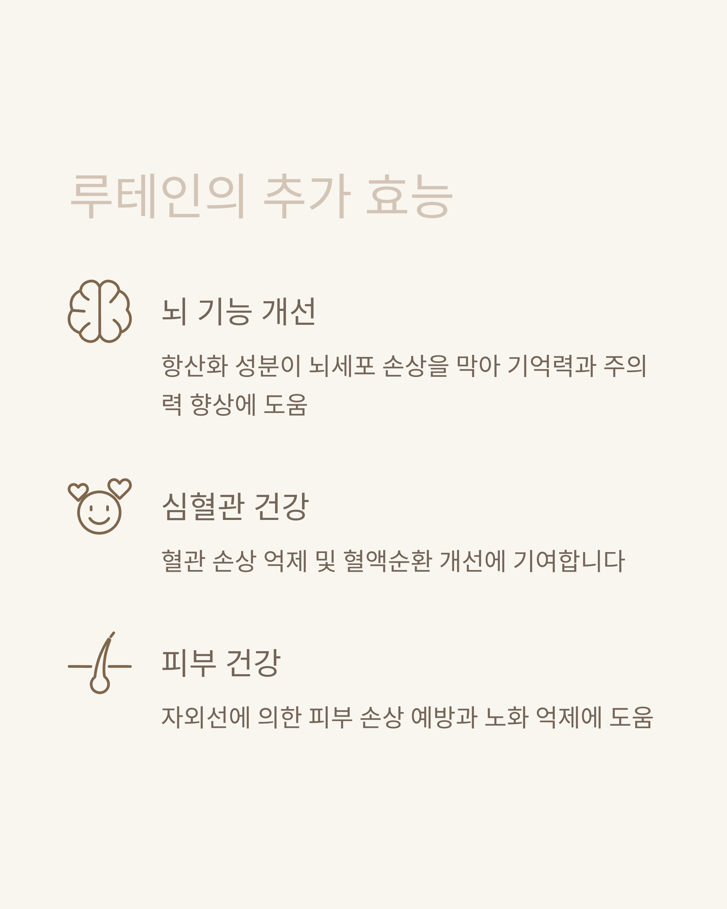- 루테인과 함께 함유된 항산화 물질이 혈관 손상 억제 및 혈액순환 개선에 기여.