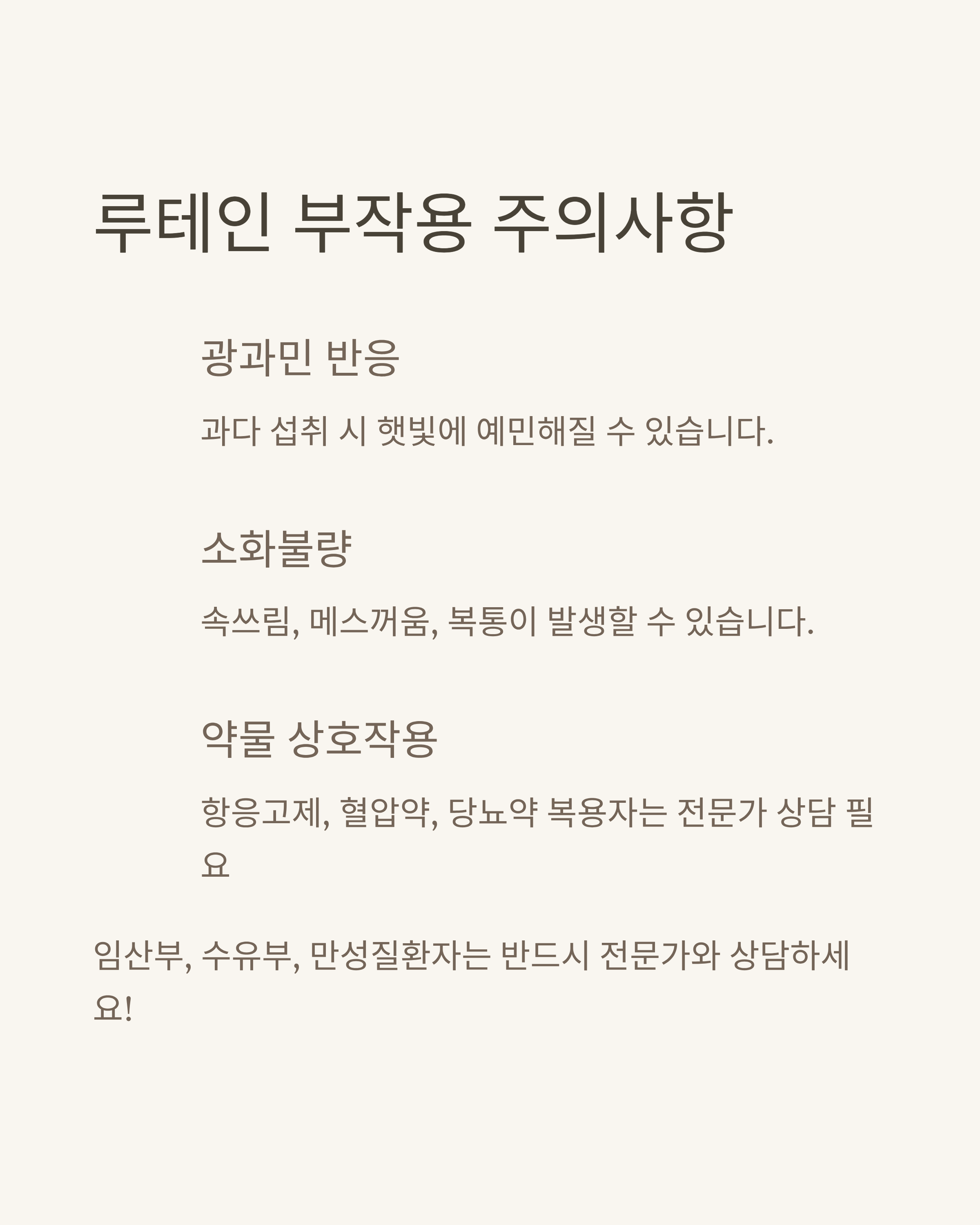 - 광과민 반응: 햇빛에 예민해질 수 있음.